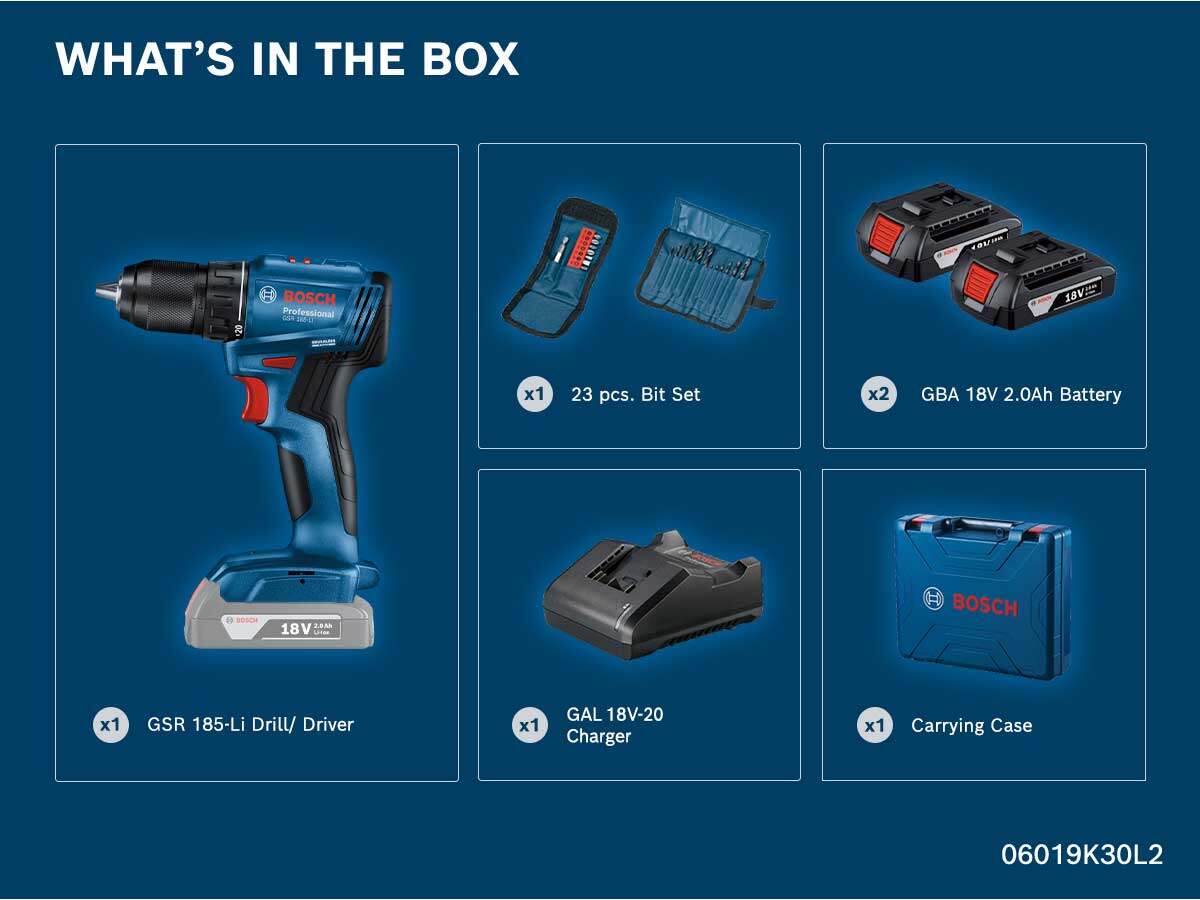 Bosch GSR 185-LI Cordless Brushless Drill Driver With 2 Batteries